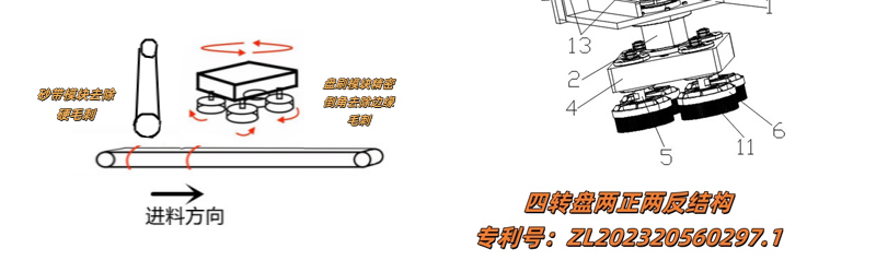 The core grinding station is a strong wide sanding belt and a planetary grinding and polishing brush tray. Due to the modular design, the two stations can be used alone or in combination.